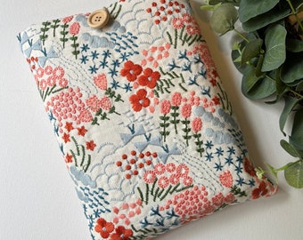 Embroidered Daisy Book Sleeve, Floral Padded Book Cover